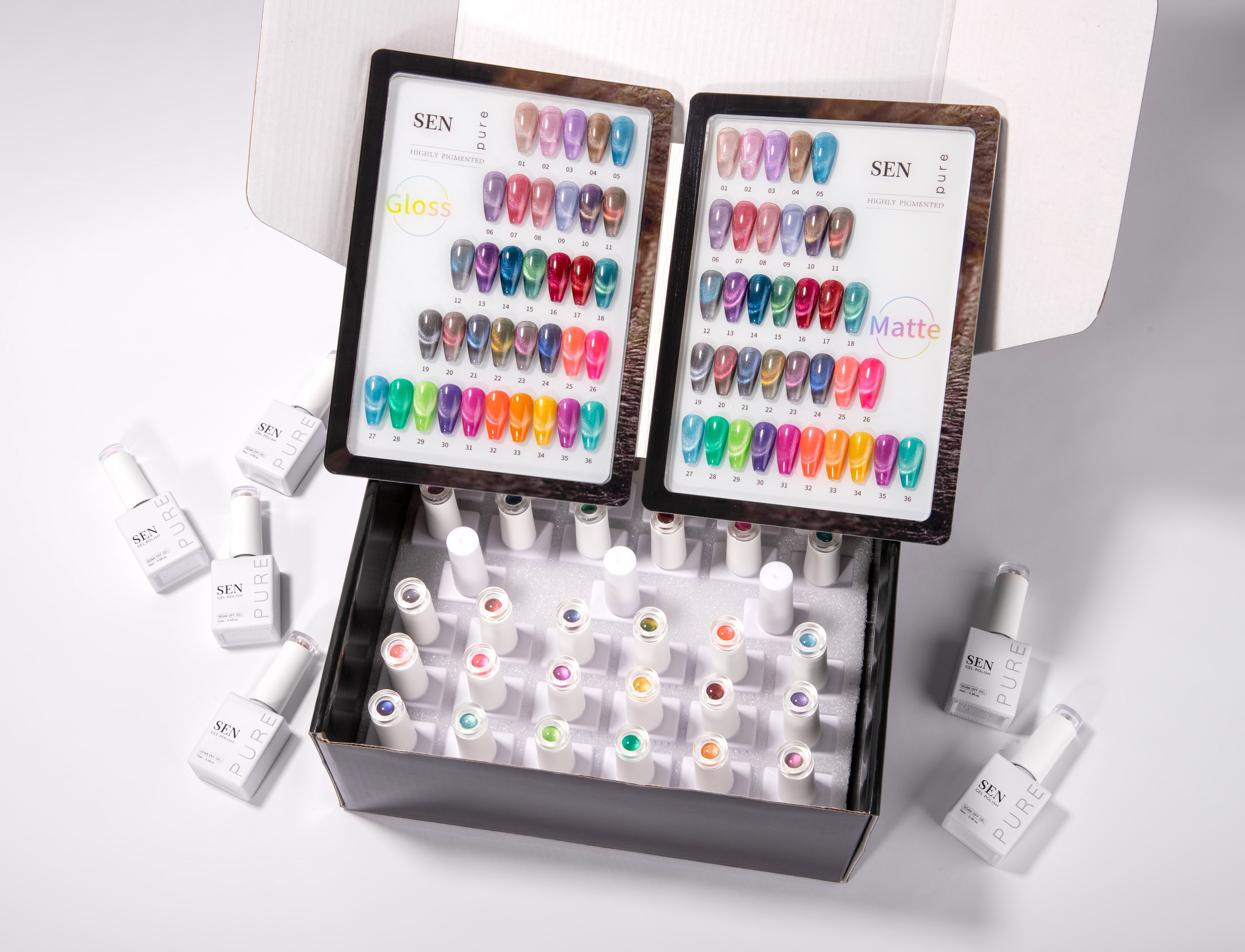Looking for a cat eye gel nail kit that will make your nails look like they've been done at a salon? Look no further than the SEN Pure Cat Eye 36 Gel Collection! This amazing kit includes 36 different colors, as well as a free top, base, matte coat and 2 magnets, so you can create any look you want. Plus, our gel polishes are easy to apply and remove, so you can change your nails up whenever you want.